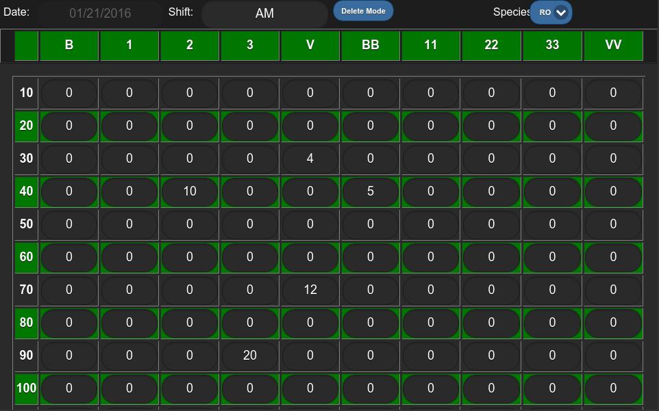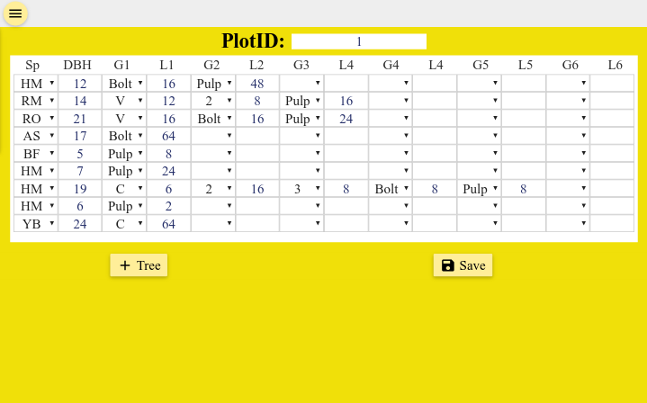 This offline capable web application was developed for a local sawmill during late 2015. It allows the user to tally logs by species/grade/volume and upload the data to a server at the end of the shift. The server based upload process (PHP) updates inventory and reporting databases with data from this app and another embedded system.