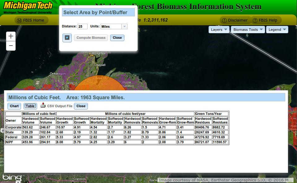 Interactive web application that allows the user to determine forest biomass volumes in a selected area. The application utilizes the ArcGIS Javascript API on the front end and a combination of ArcGIS maps, models and Python on the backend to serve data over a RESTful API.